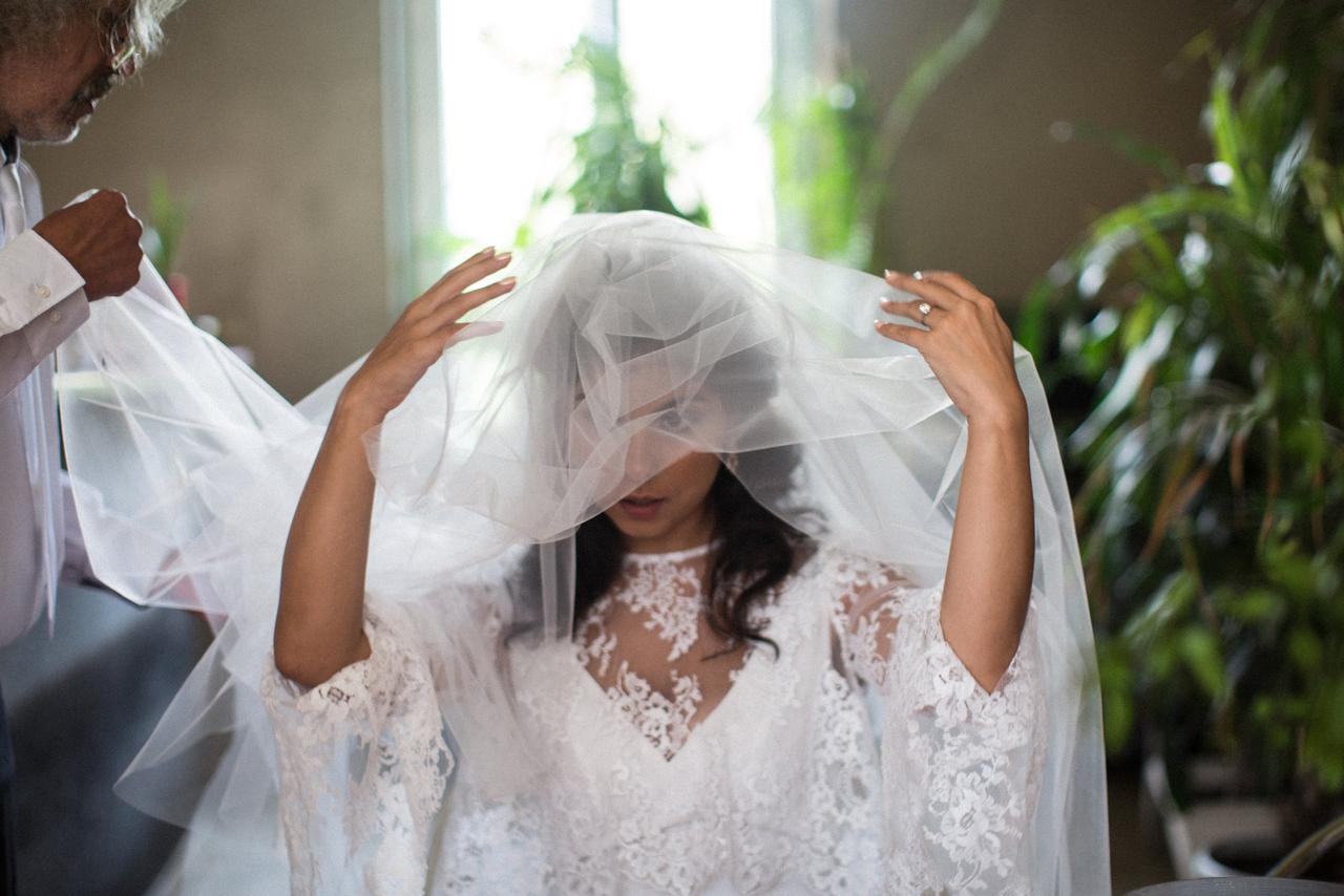 Lena got ready on her wedding morning with her dad, who is a hairdresser. He styled her hair into a beautiful half-up, half-down look, while her makeup was done by Isabelle at the MAC Lyon Herriot boutique.