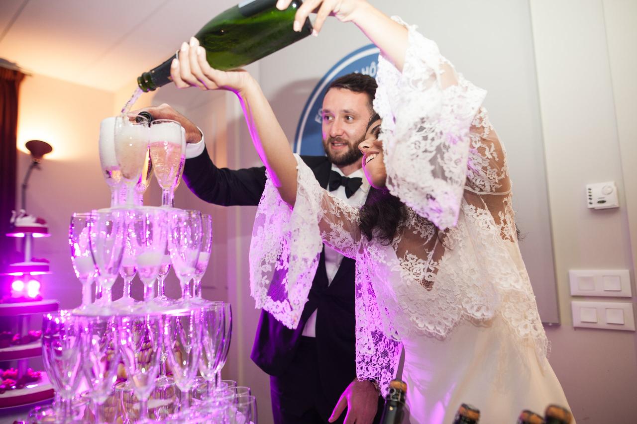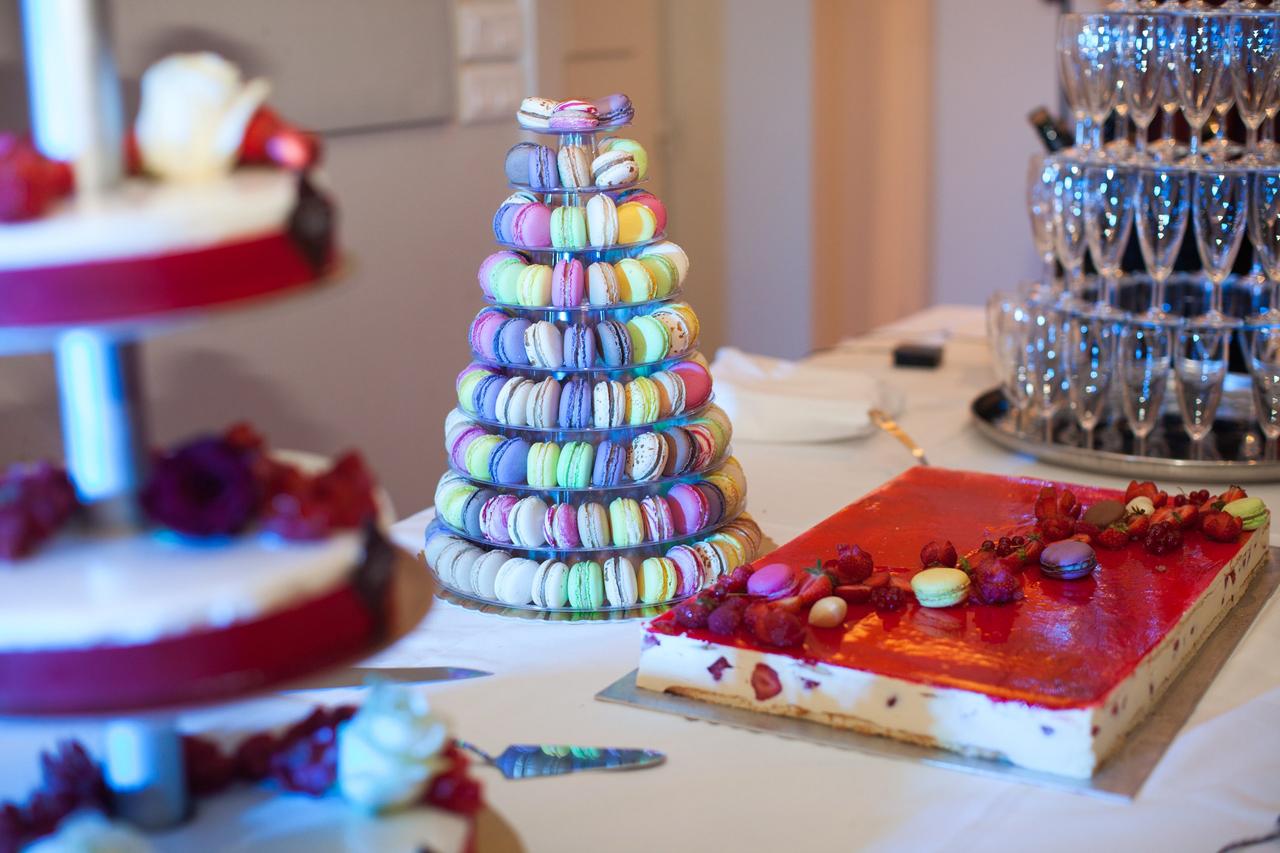 Dessert too was above and beyond: they had a dessert table laden with a macaron tower, Champagne tower, and a five-tier wedding cake.