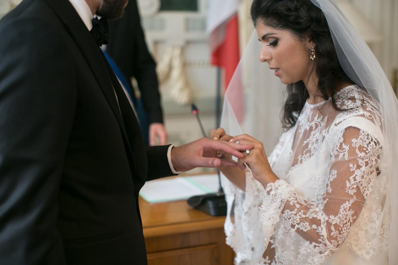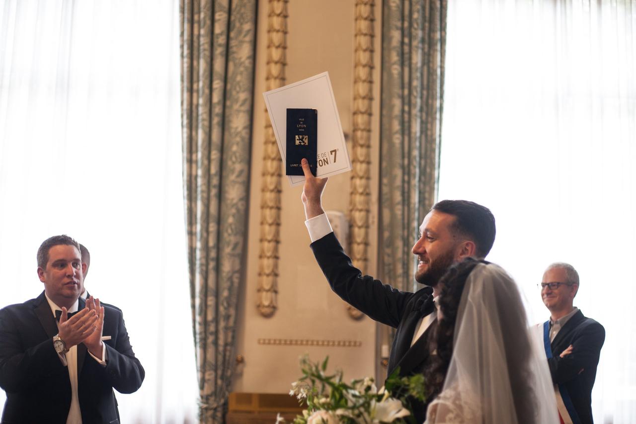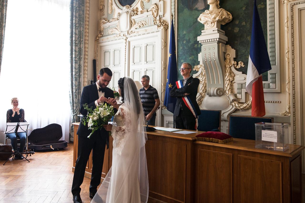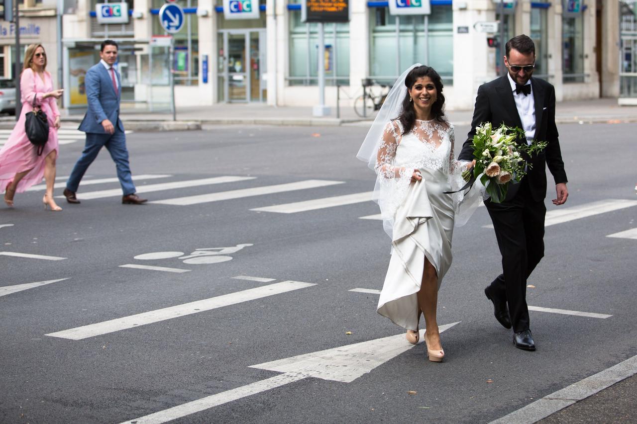 They held their ceremony at the Mairie du 7e arrondissement, the Town Hall in the lively Jean Macé district of Lyon. "It was a regular civil ceremony where our duties to each other are listed, an aspect of French wedding that I personally like," said Lena. "And we had a family friend act as an interpreter for the English speakers."