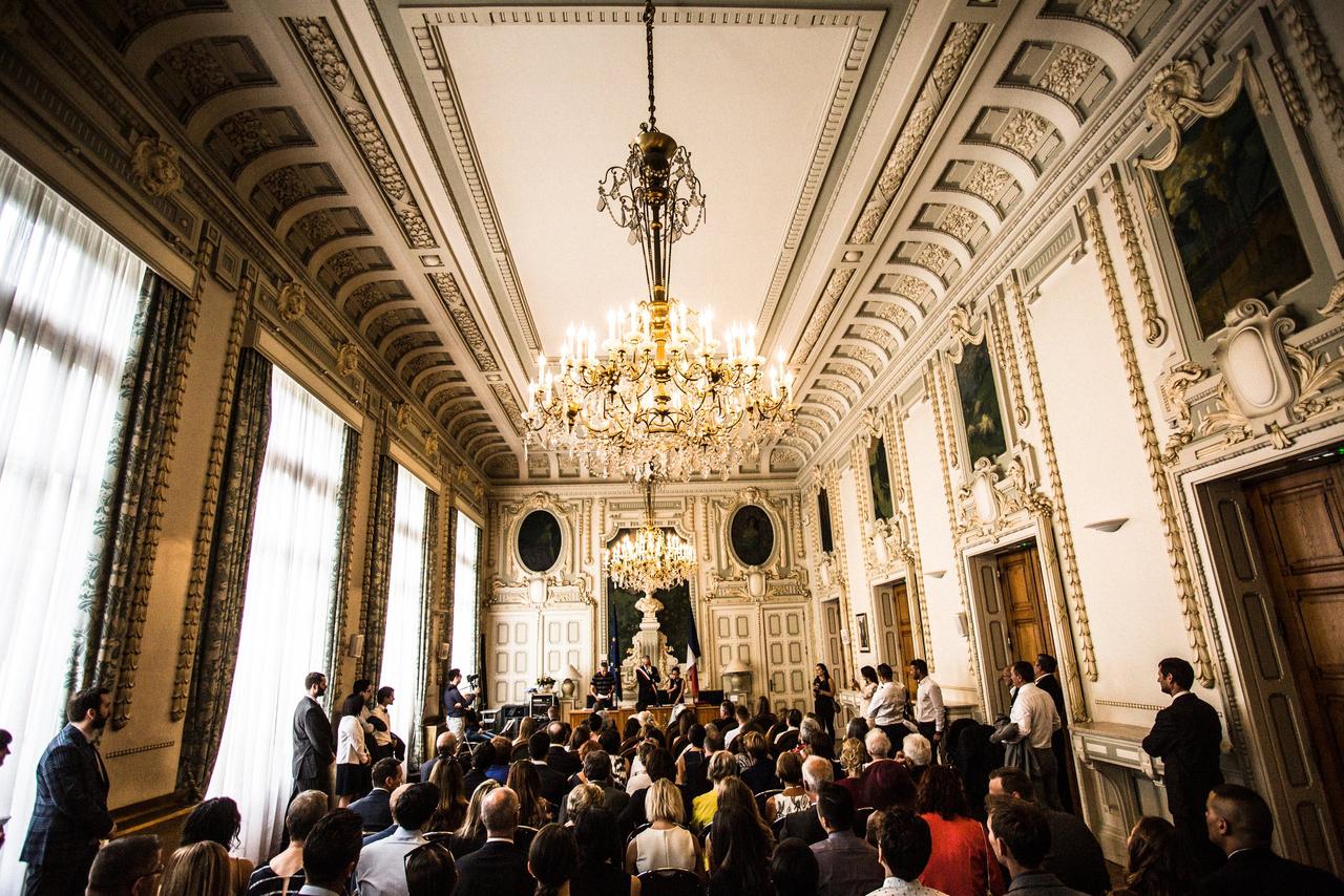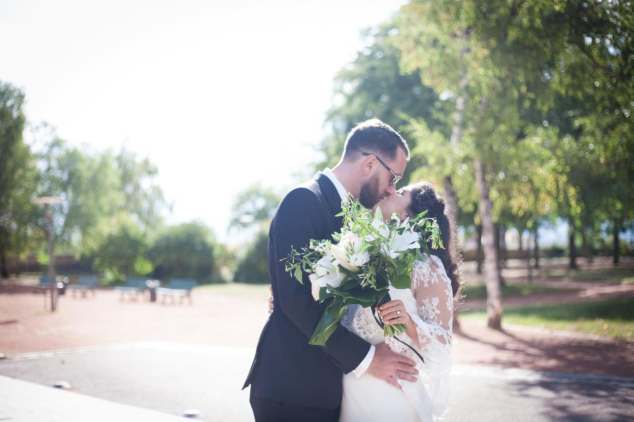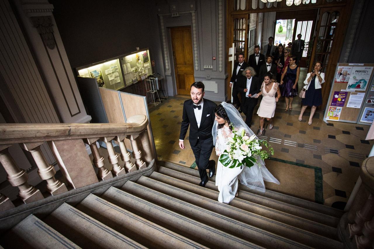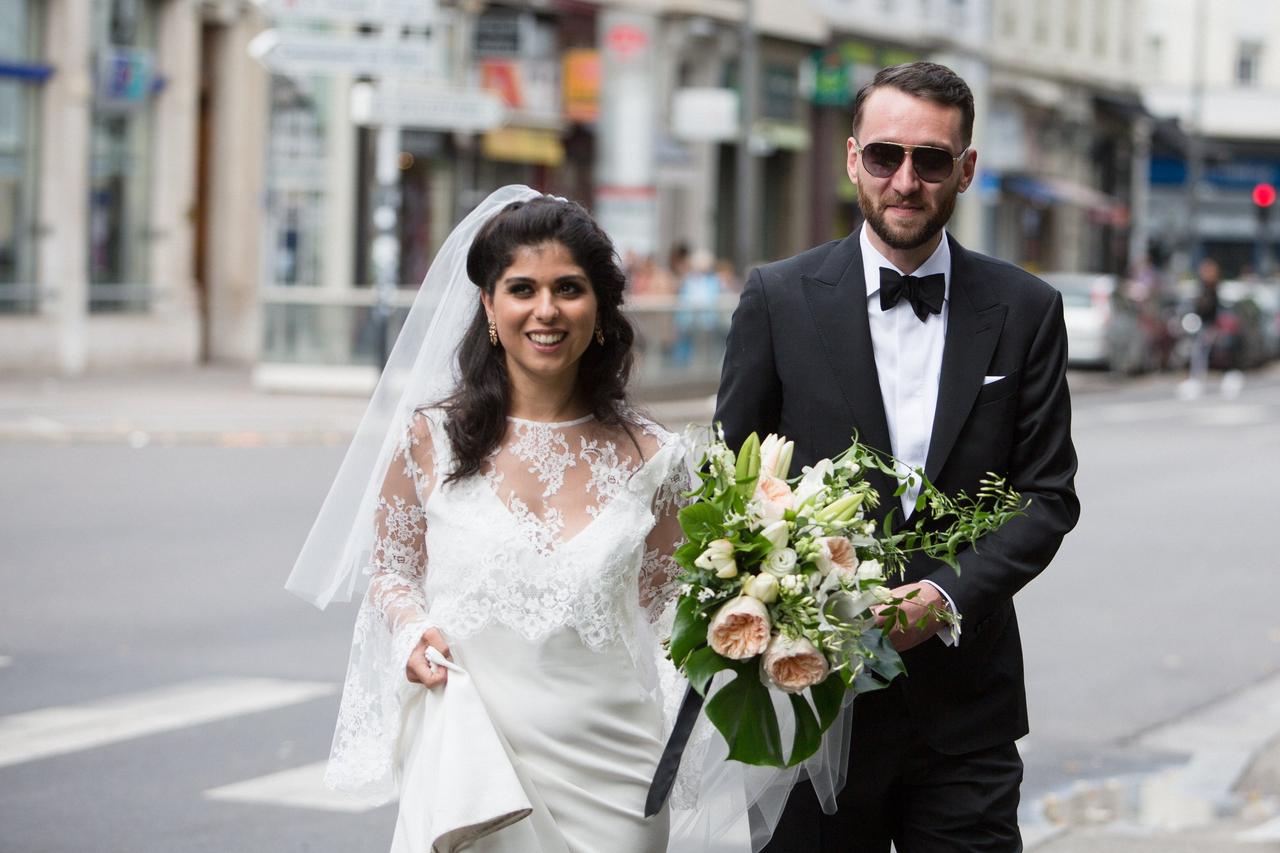 They held their ceremony at the Mairie du 7e arrondissement, the Town Hall in the lively Jean Macé district of Lyon. "It was a regular civil ceremony where our duties to each other are listed, an aspect of French wedding that I personally like," said Lena. "And we had a family friend act as an interpreter for the English speakers."