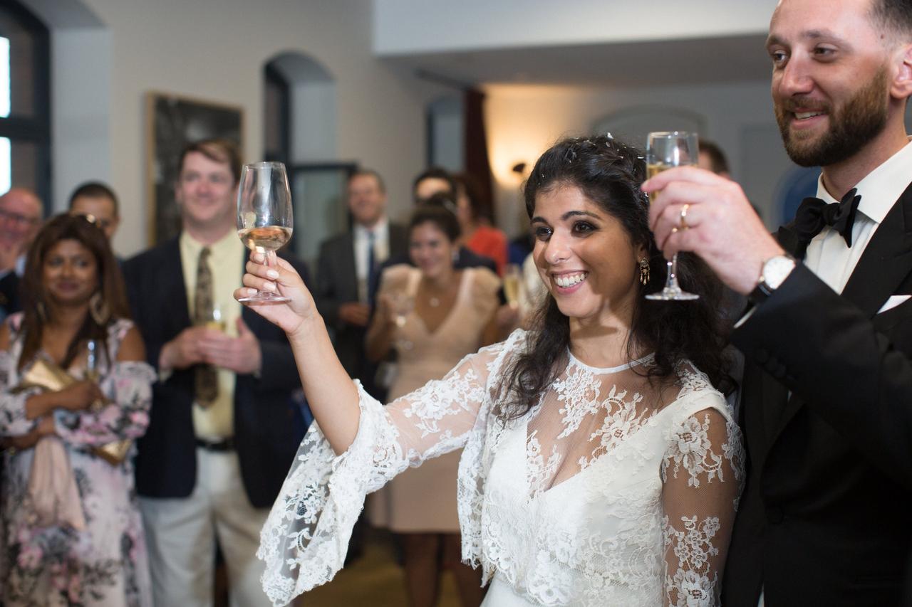 "We had to make each order twice, once in French for our French guests and once in English for the others. The RSVP cards were double the nightmare as we had to source stamps for each country!" explains Lena.