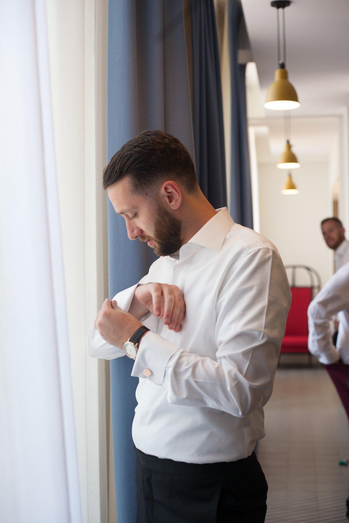 Edward stayed at the hotel the night before and got ready with his two groomsmen.