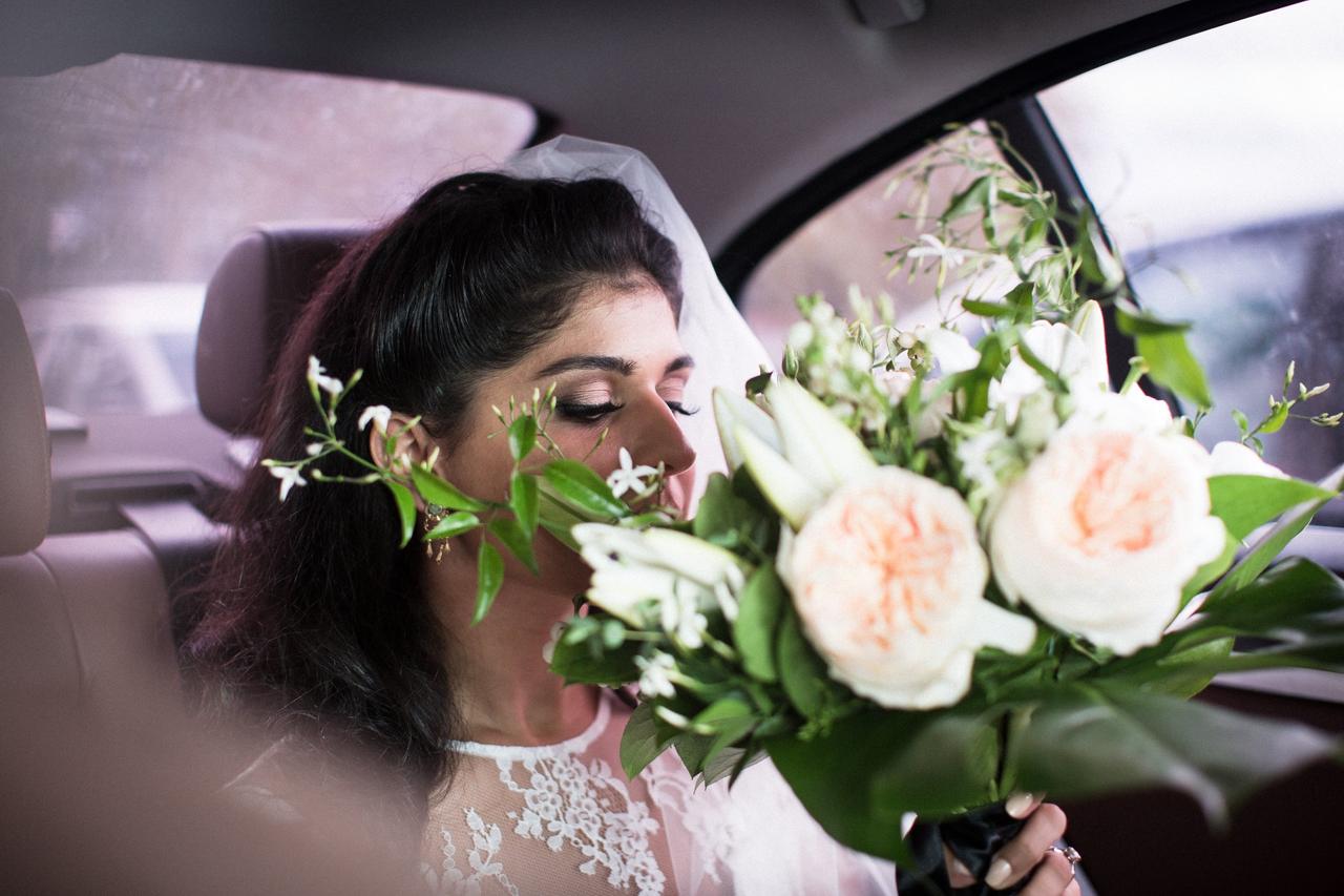 The white was brought into her big, seasonal bouquet too. "It had lilies and honeysuckle with touches of blush from David Austin roses and a lot of foliage. The result was quite modern looking."