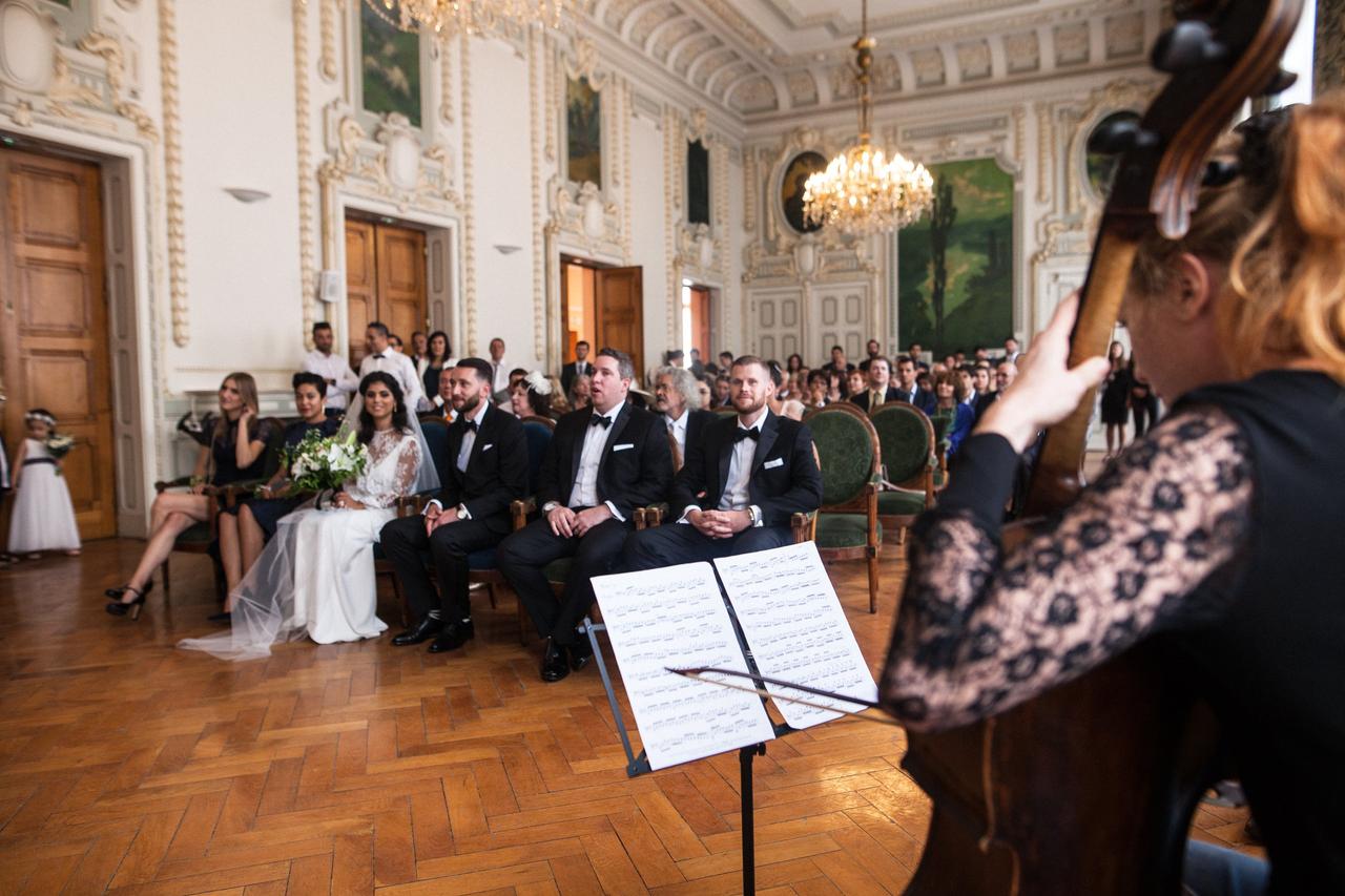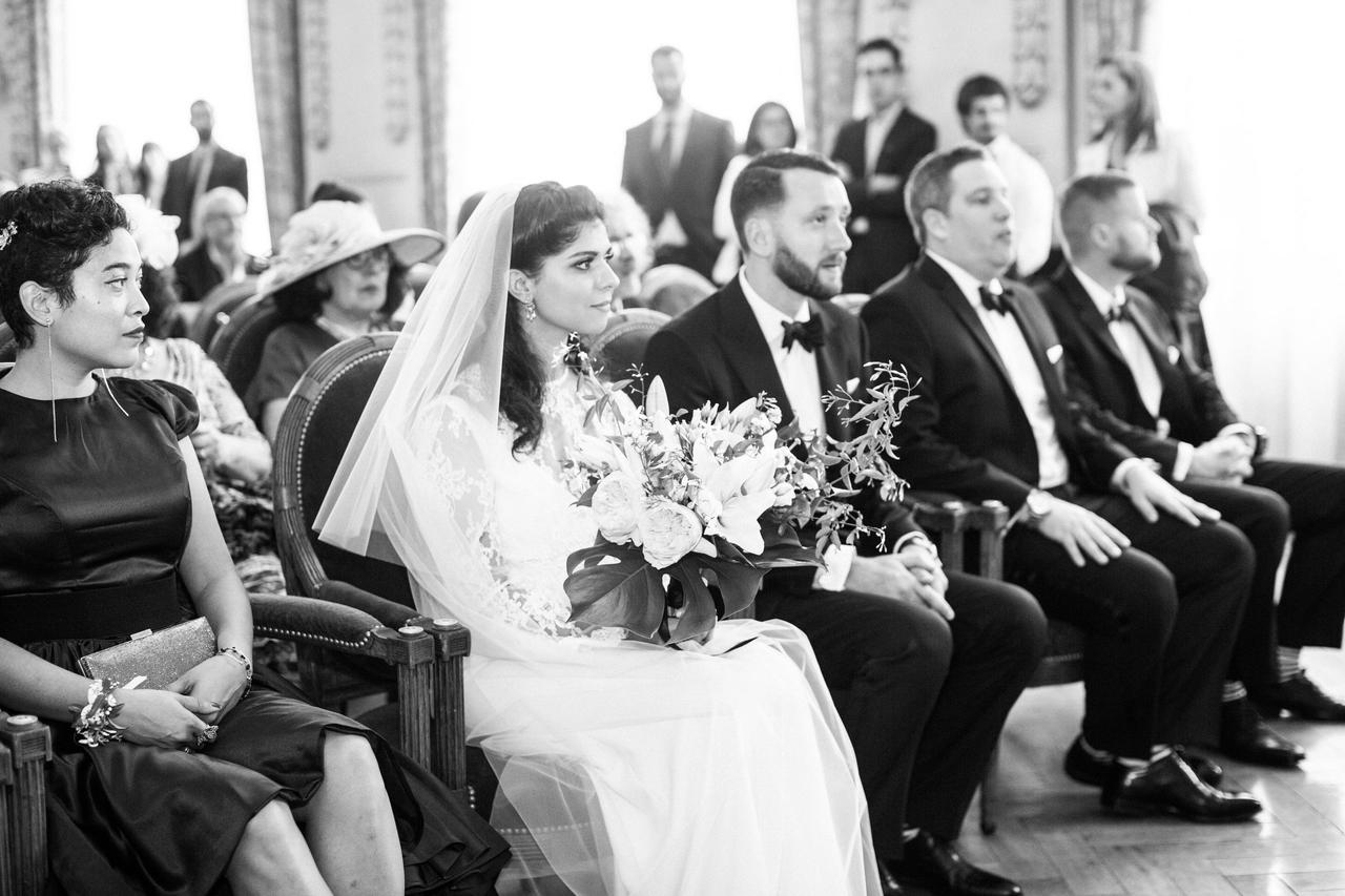 Edward walked down the aisle with his Grandmother, June Lurie, while Lena's dad accompanied her. "The music was Bach’s Opening of the Cello Suite #5, which I like a lot. Also the music had to be non-religious to comply with French law. I like that aspect because we both wanted a beautiful, but secular wedding."