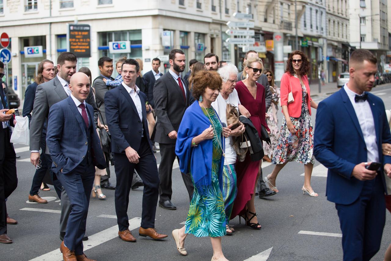 The couple arranged coaches to take their guests from the ceremony back to the hotel for the reception as they worried they'd get lost in the streets of Lyon. Thankfully they also had Ed's friend Jack, who stepped in to herd the crowd from one thing to the next.