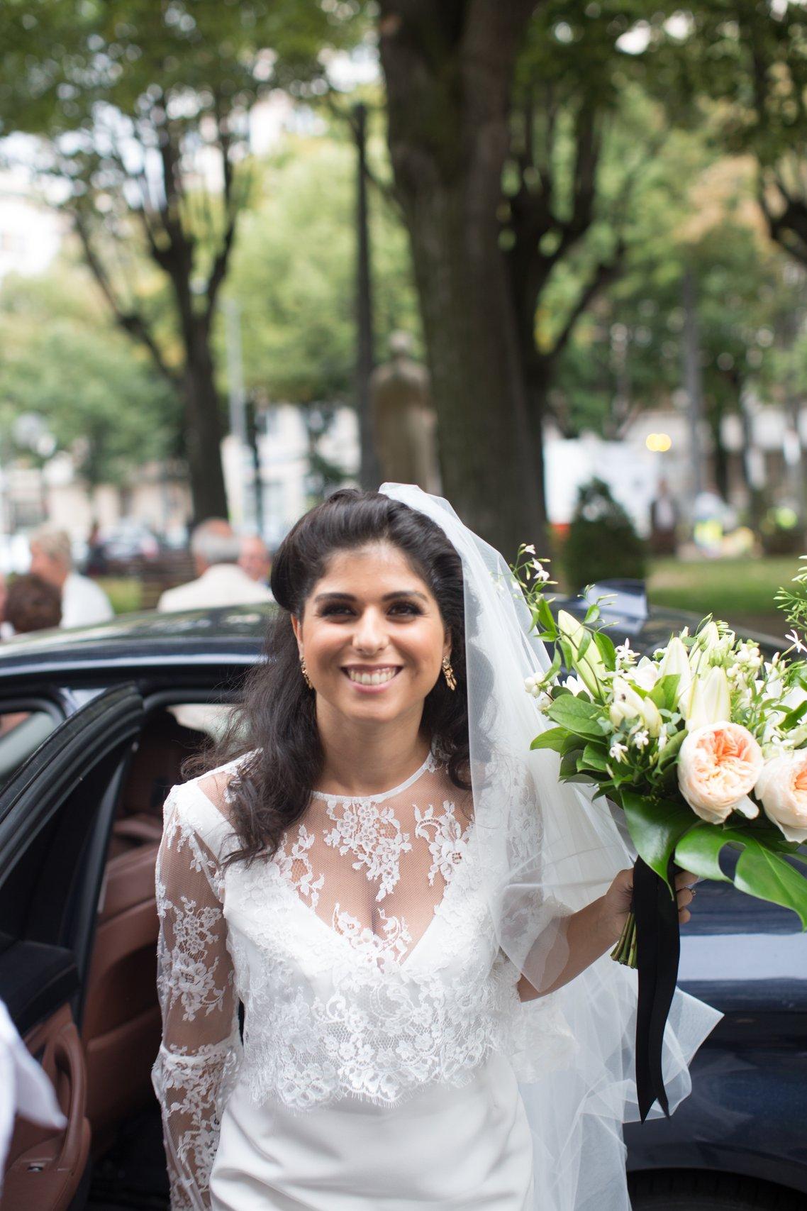 Lena wore a classic, v-neck gown bought in Paris which she topped with a long, silk veil. After trying on dozens of dresses, it was one that she had spotted online that eventually became The One. Despite a long search, Lena wouldn't change a thing about: "You do this once in your life so everything about it is special - and stressful!"