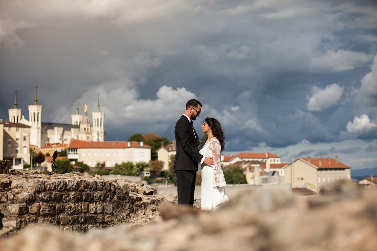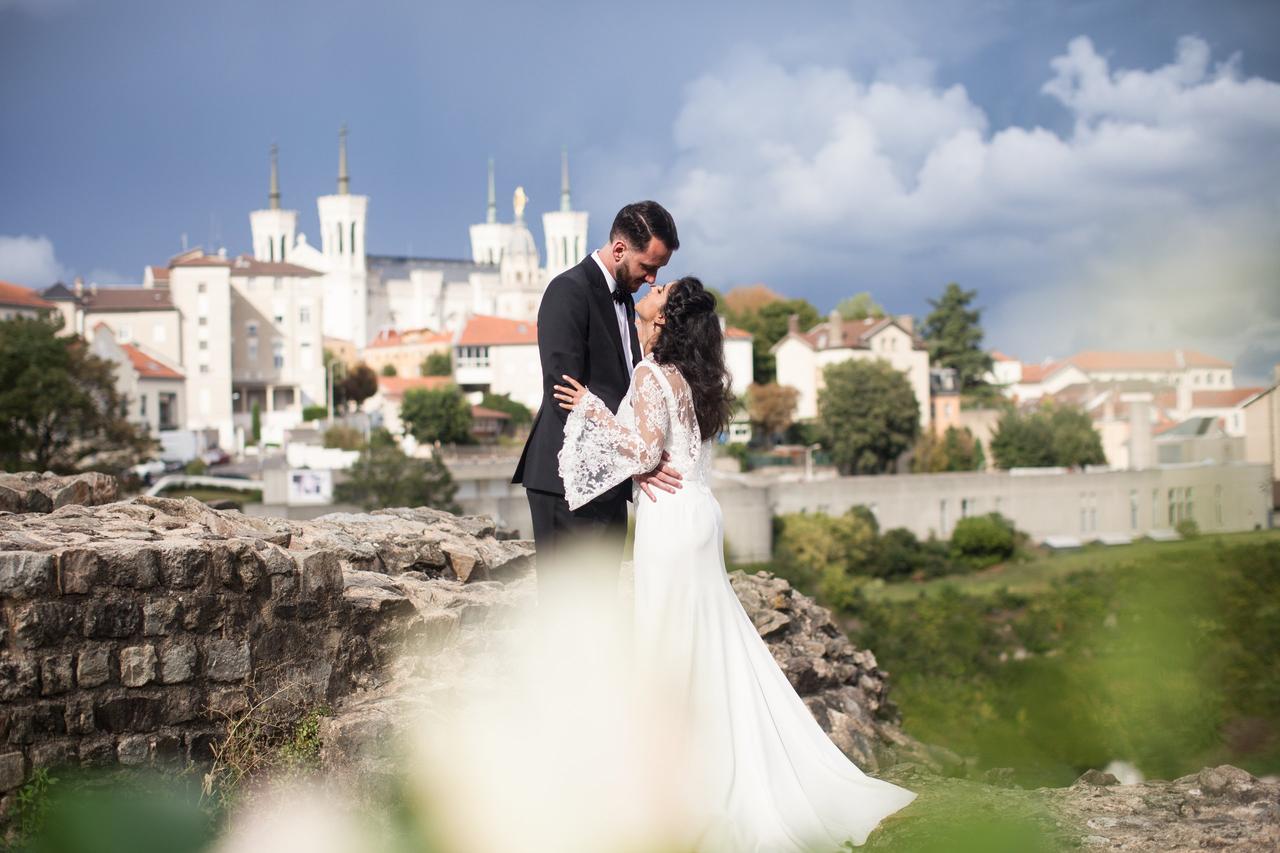 The reception was held back at the atmospheric Fourvière Hotel, a converted 19th century convent. "It is next to Roman theatre ruins where some of the wedding photos were taken, as well as the Fourvière Basilica. It's at the top of a hill that overlooks the whole city," said Edward.