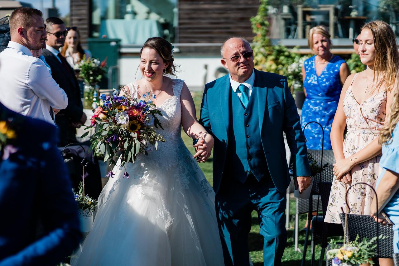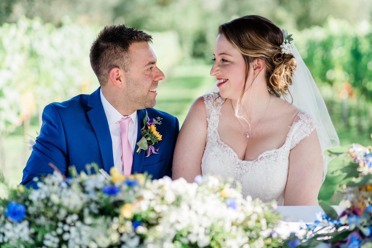 Holly and Lee were blessed with a beautifully sunny day in September 2019 for their vineyard wedding, which burst with bright colours and personal touches.