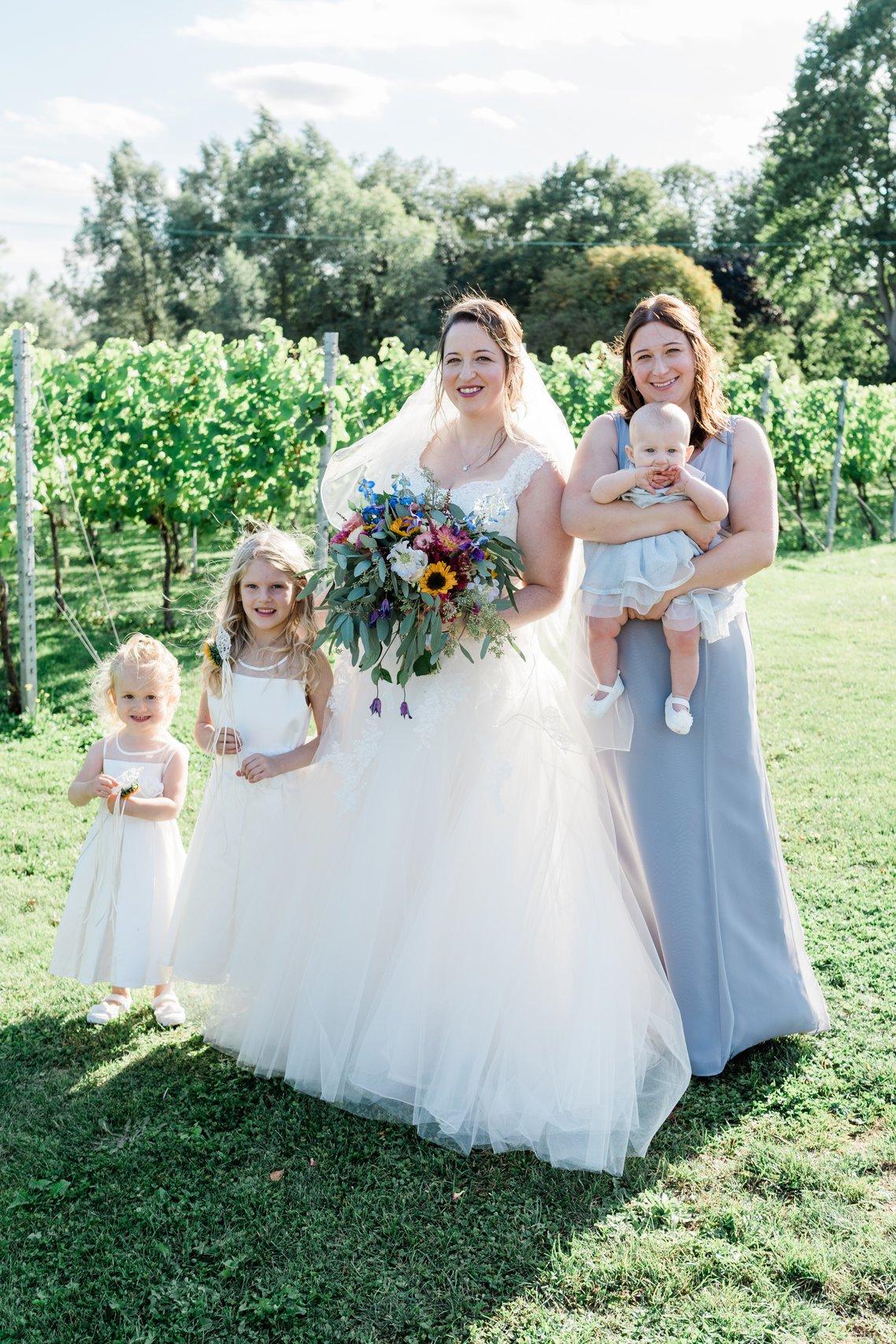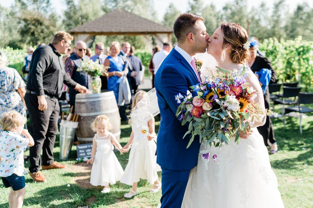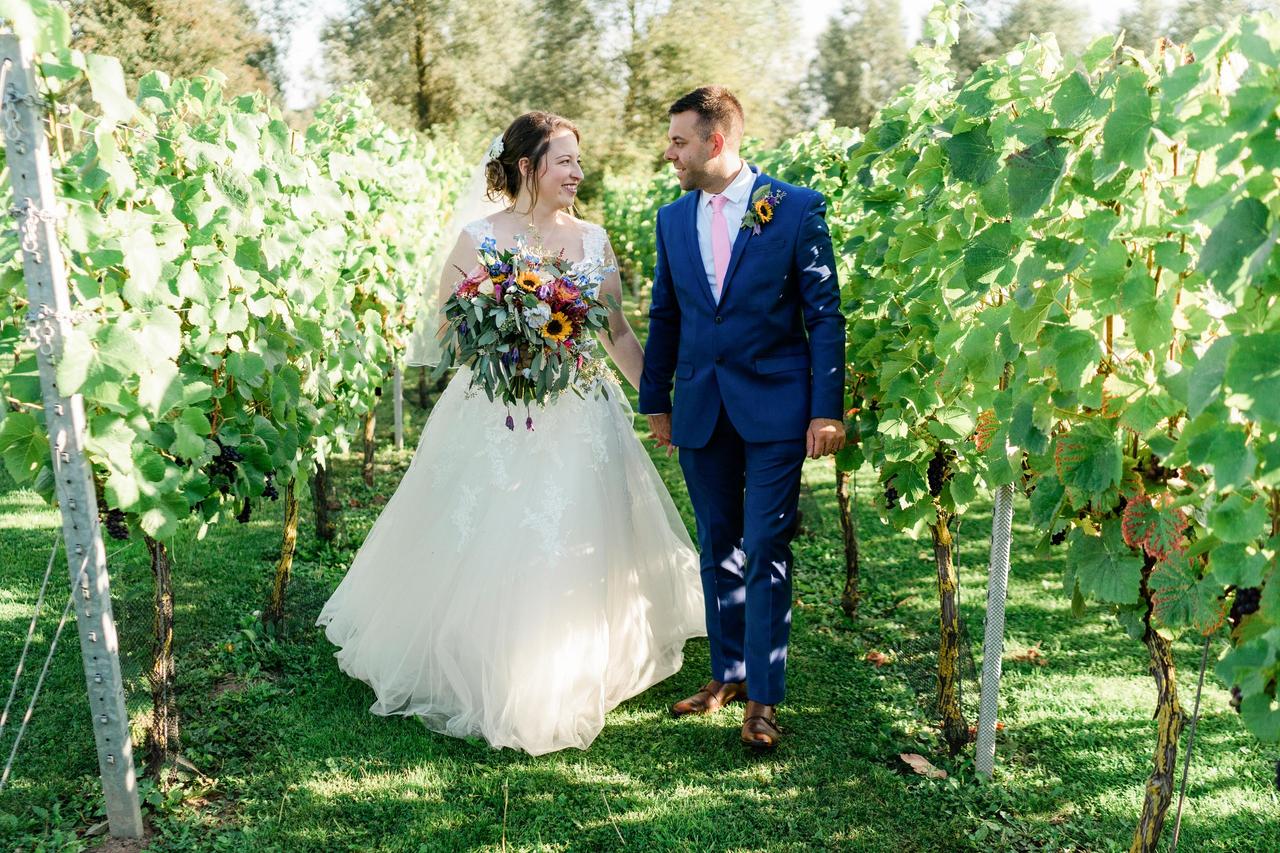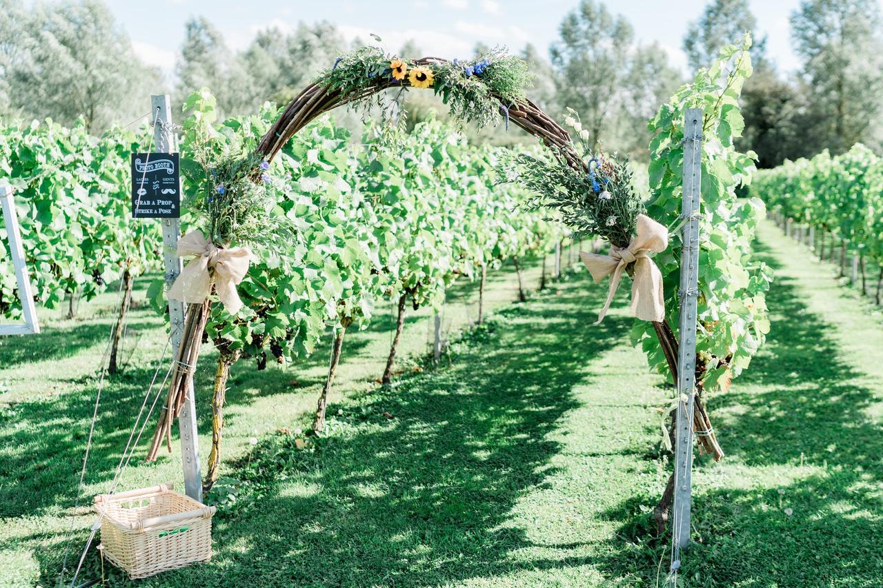 The ceremony took place at West Street Vineyard, under a gorgeous outdoor gazebo, surrounded by vines. They knew the venue was right as soon as they visited.