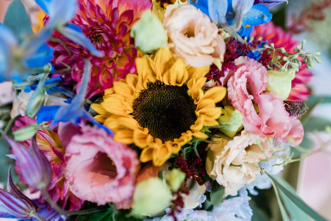 "We chose to have no colour scheme. We wanted it to be as colourful as possible. The bouquets had lots of pops of bright colour.