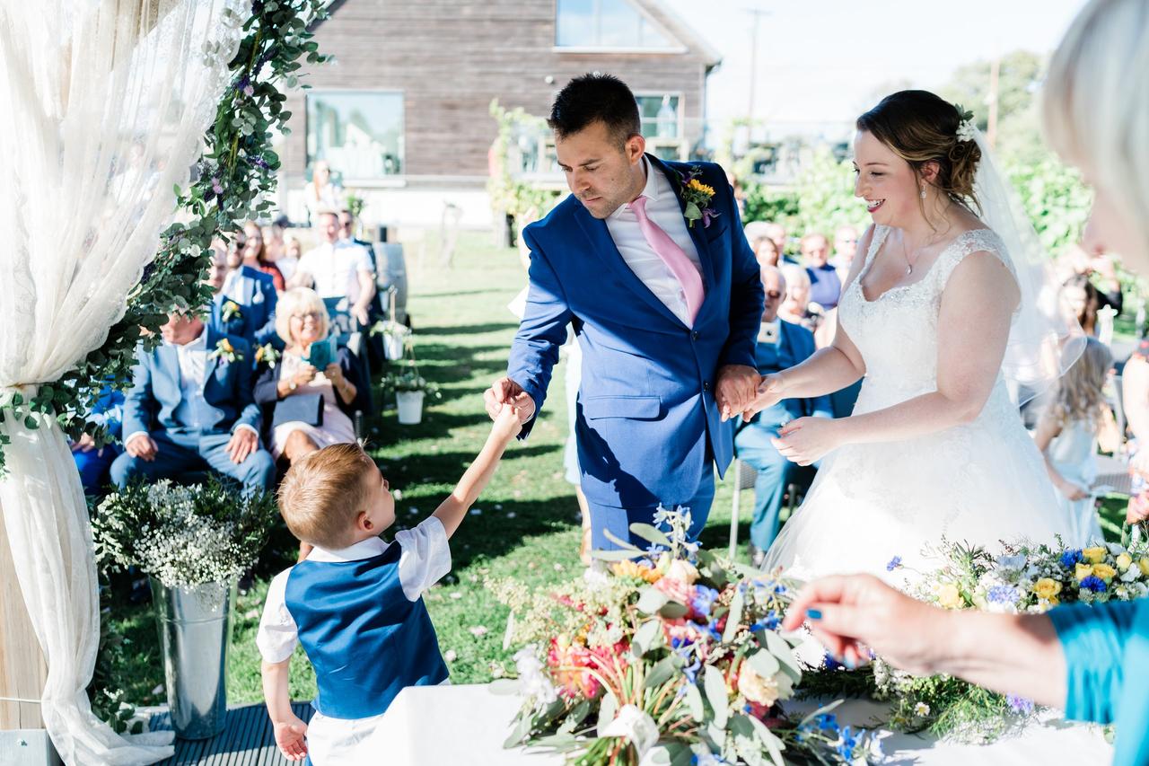 Like every good wedding, it survived a near-disaster early on! "Our page boy (and nephew) accidentally dropped Holly's wedding ring. It was a millimetre away from falling between the wooden crack of the gazebo. That was rather funny and strangely helped us to relax."