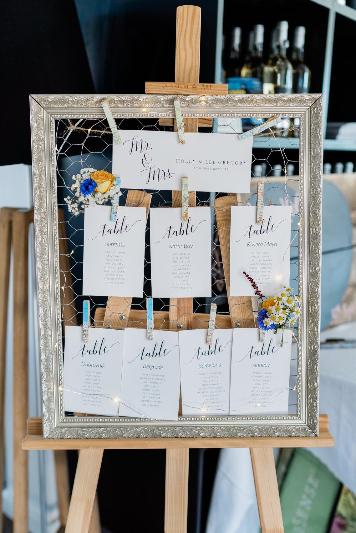 Guests sat at tables named after destinations they'd visited on holiday together, where each got a lovely personalised favour.