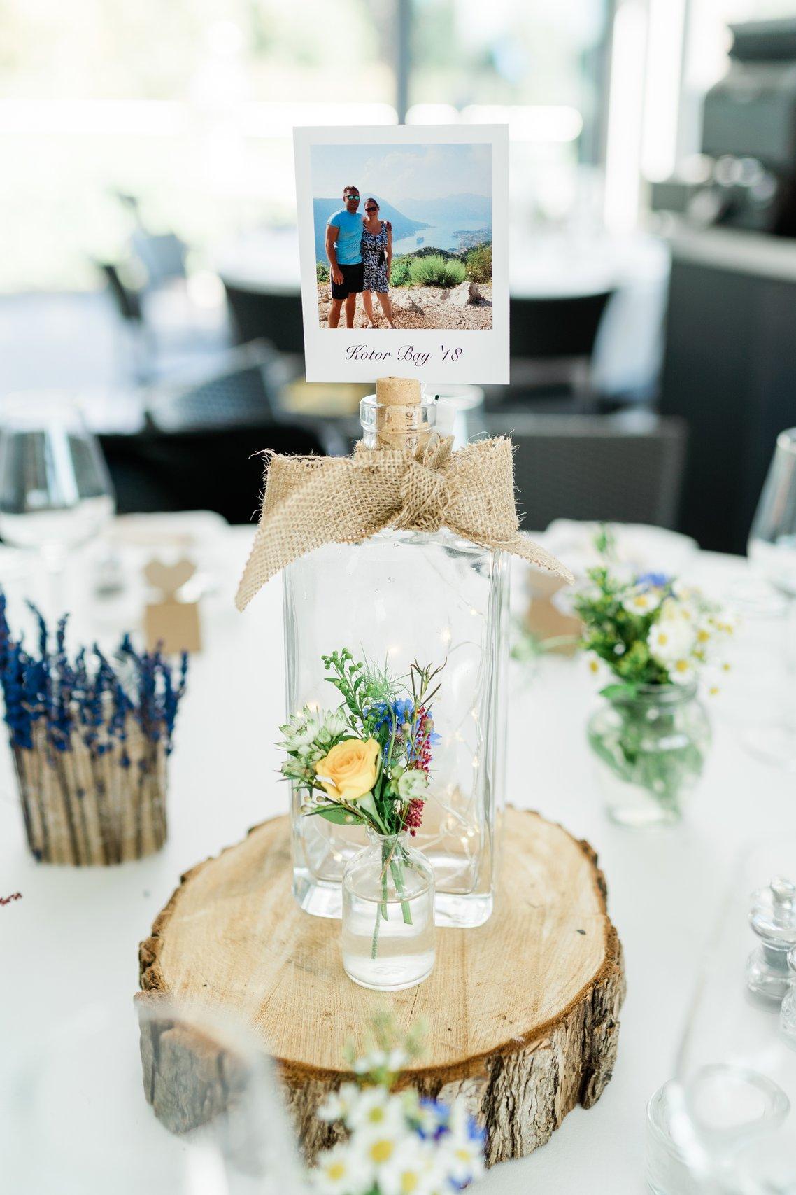 "The Vineyard put the centrepieces together for us. They were made up of lots of different size bottles (gin bottles, wine bottles etc) filled with fresh flowers.