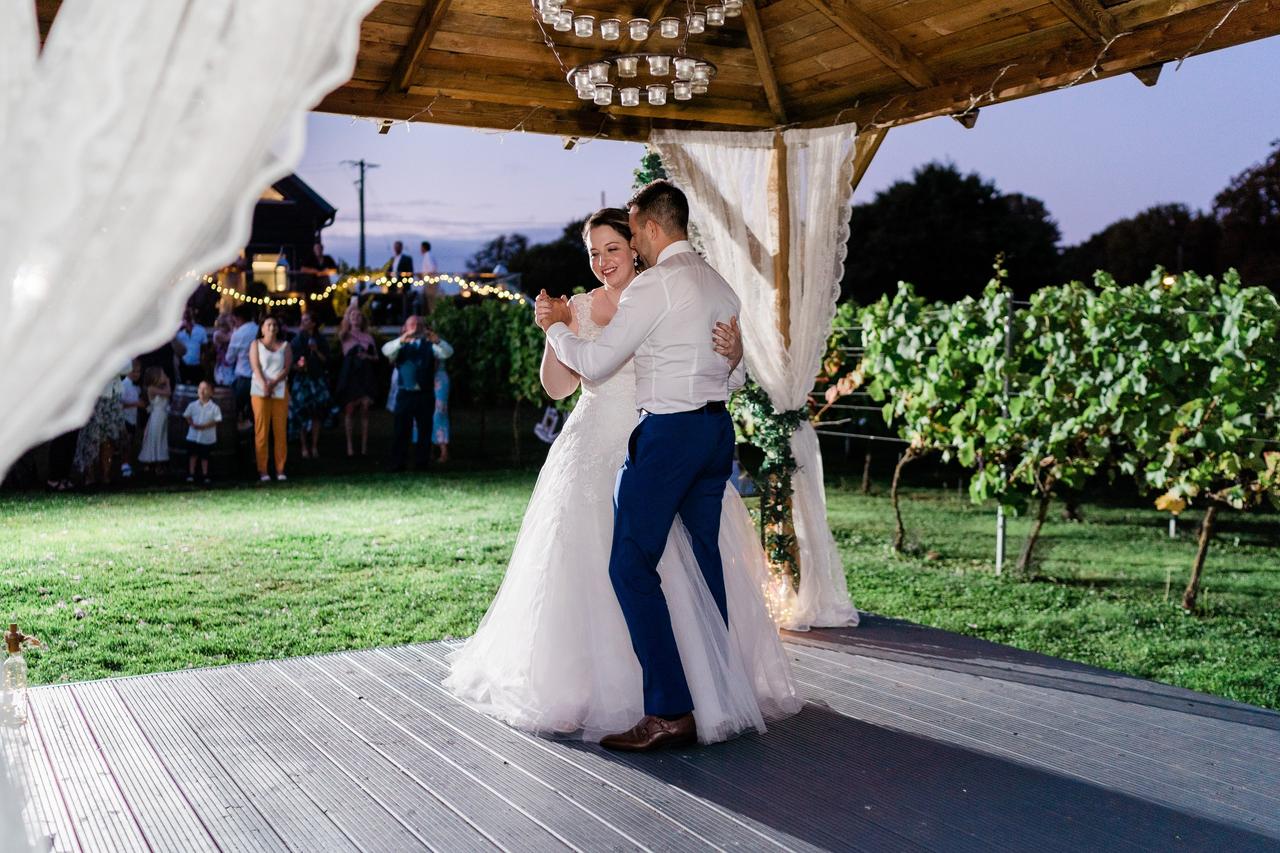 Their first dance was to Fields of Gold by Sting: "The first dance was a very special moment for us. It was under the gazebo outside as the sun was setting, in front of the vines."
