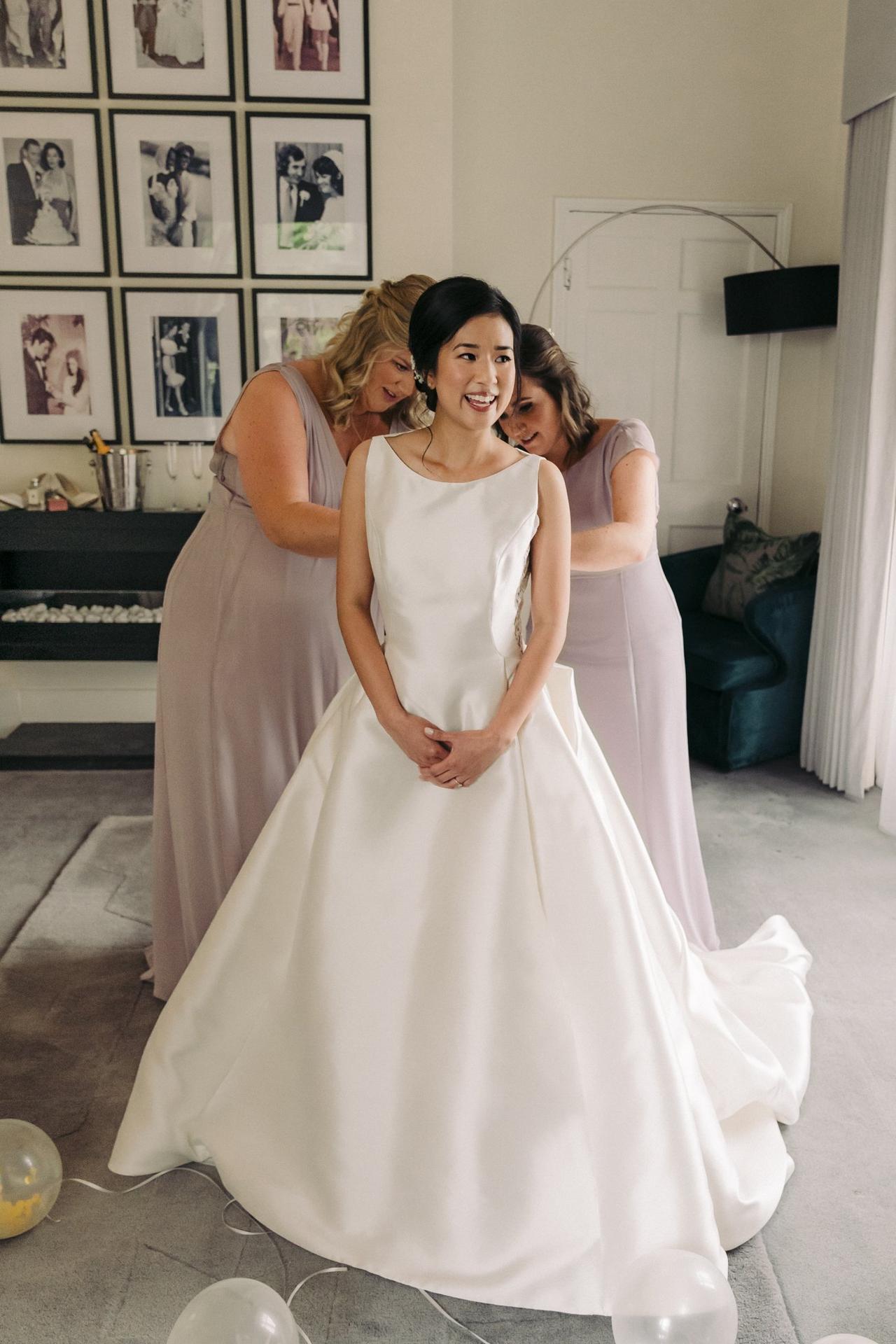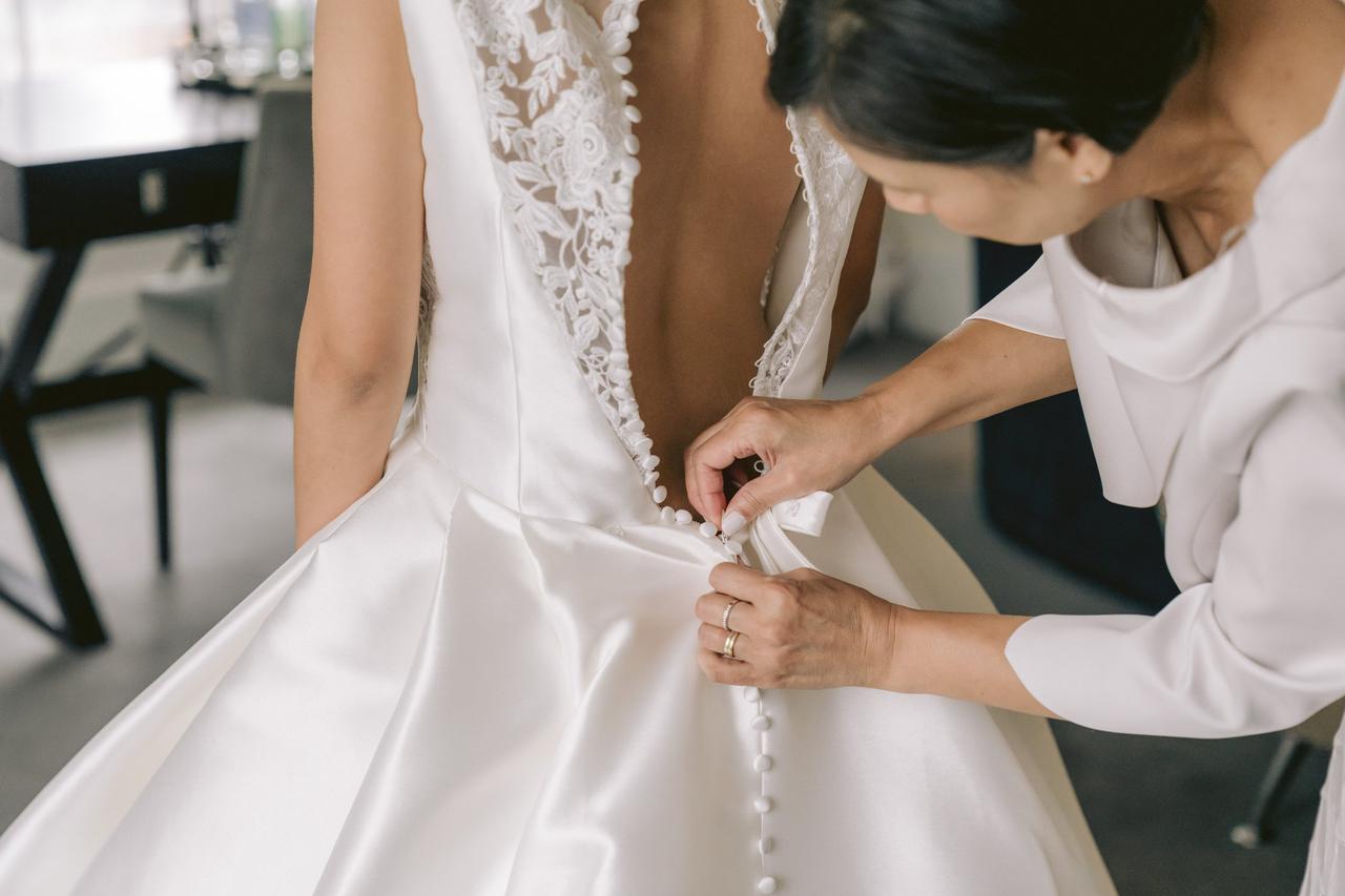 "My dress was totally different to what I expected to wear, it was just perfect. I went for a Pronovias dress which was an ivory, classic, ballgown style with details on the side and back, and buttons all the way down the rear.