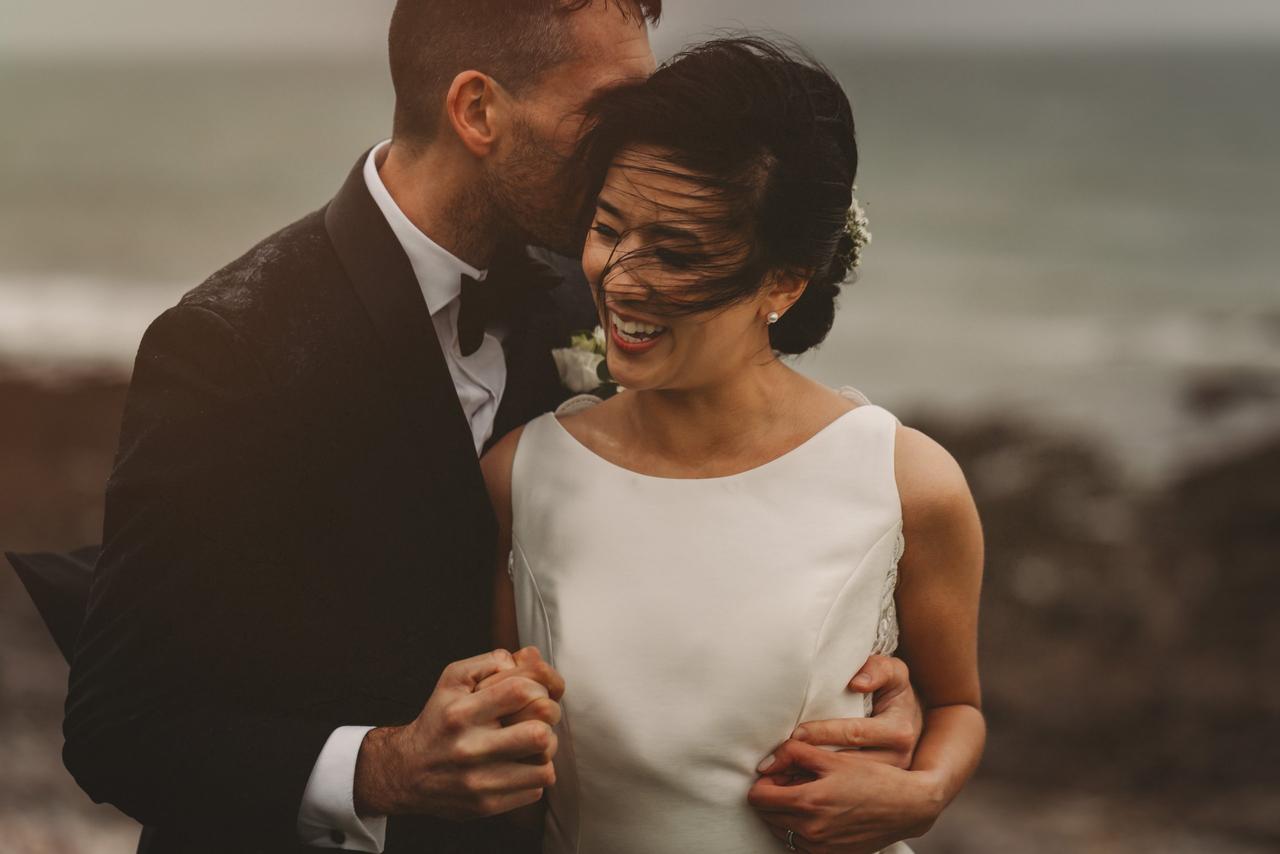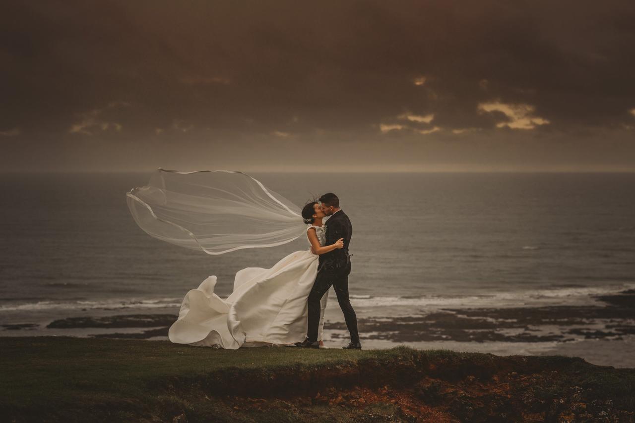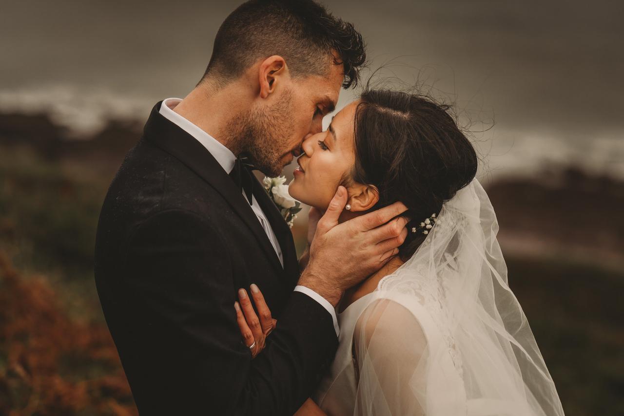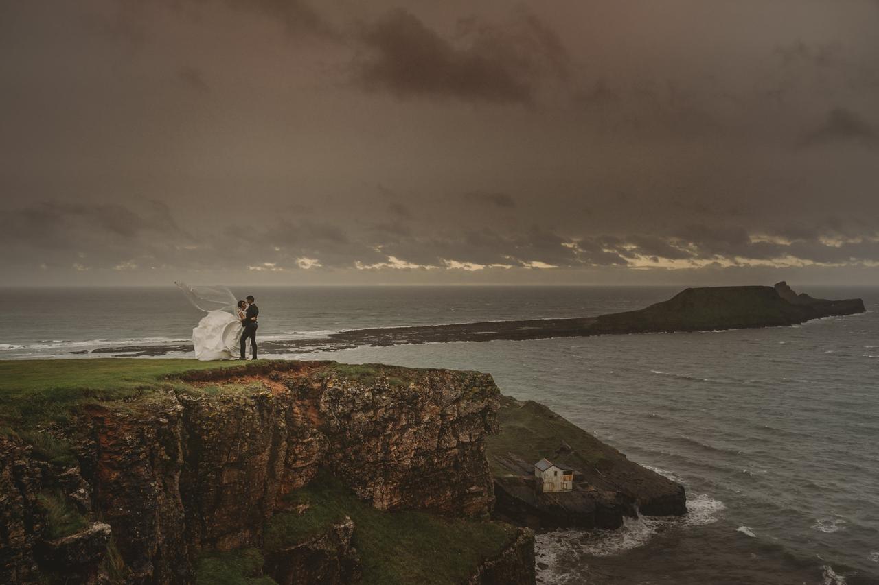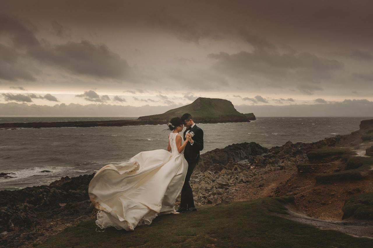 The couple hopped in the car to Rhossili Bay after the ceremony for photos. "It was during storm Alex so it was very windy and very memorable. My dress needed a dry clean afterwards, but it was totally worth it for the epic cliff shots."