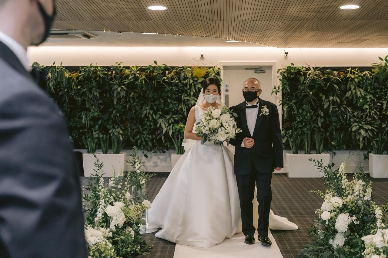 Although most brides don't plan to walk down the aisle with their face half-covered, Dan added, "She looked beautiful even with the mask on."