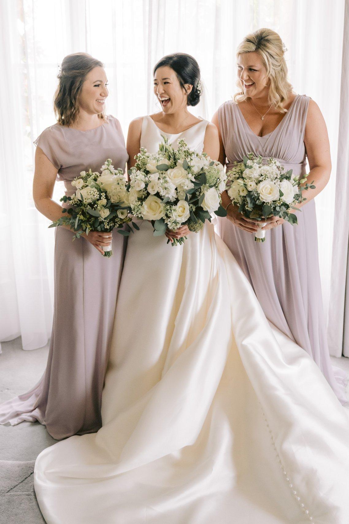 Both chose lifelong friends as their wedding party. Jody had two bridesmaids - both were school friends she'd known since she was 11 and had been friends with for about 20 years! The bridesmaids wore frosted fig colour dresses from Maids to Measure, one sleeveless and one with little cap sleeves.