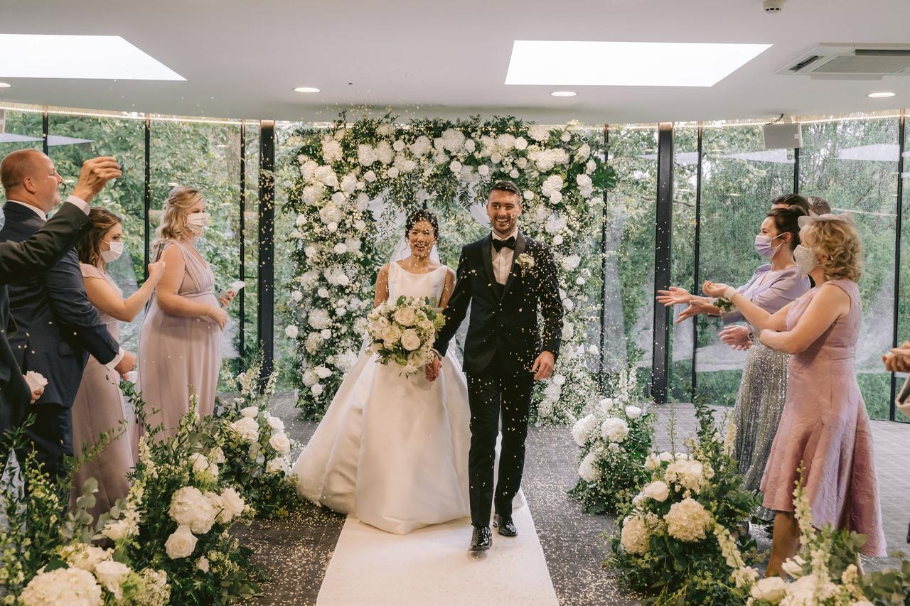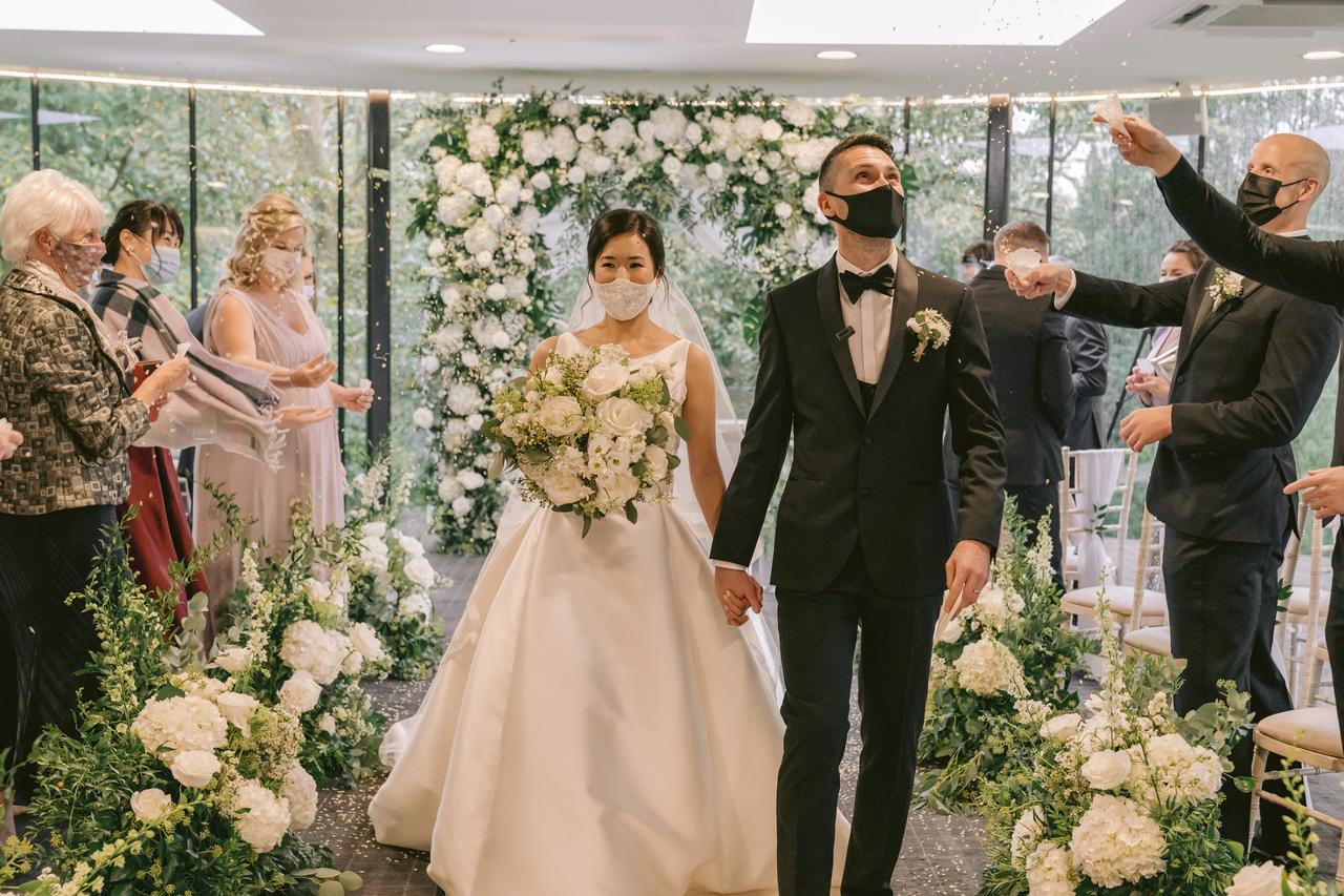 "My favourite moment of the day was just after we got married, walking back up the aisle. I felt a sense of relief, happiness and love. I remember smiling and waving as we walked past the livestream camera. All of my worries and stress just disappeared on the day.