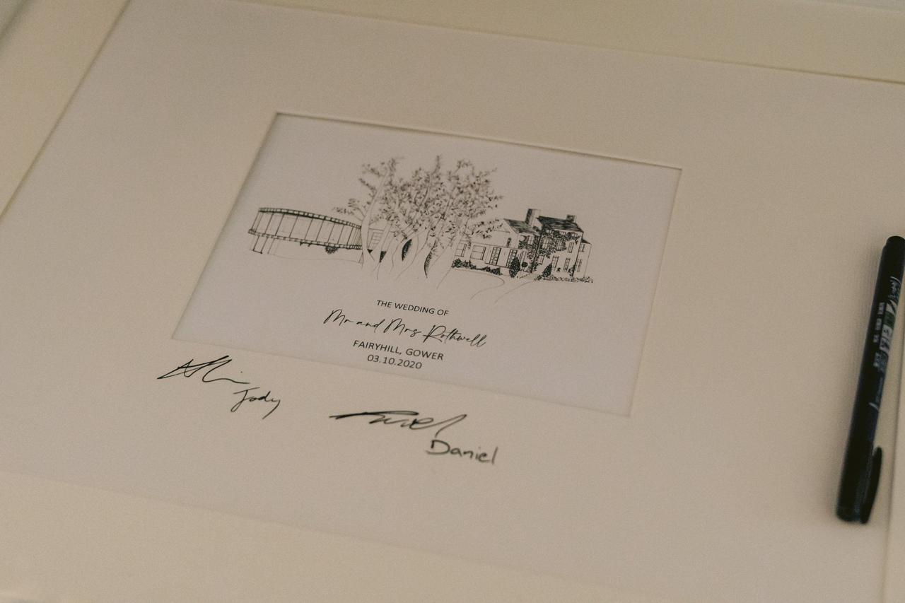 "Our venue, Fairyhill by Oldwalls, also provided a live streaming service, so lots of our friends who weren’t able to make the day tuned in. It was so nice knowing they could be apart of the wedding - even though they weren’t physically there, we knew they were there virtually."