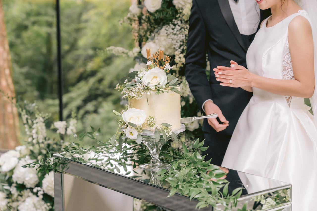 As the couple were unable to have a proper reception, they followed the ceremony with canapes and included a few speeches and a cake cutting.