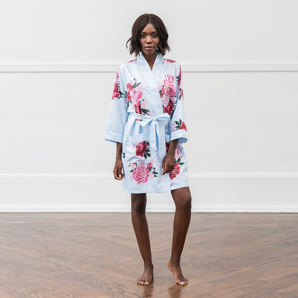 Personalised Embroidered Floral Satin Robe With Pockets – from £17.99, Hitched Shop